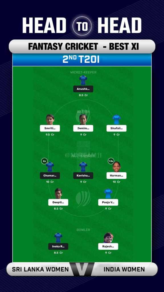 All-rounders: Chamari Athapaththu, Harmanpreet Kaur, Kavisha Dilhari, Pooja Vastrakar, Deepti Sharma