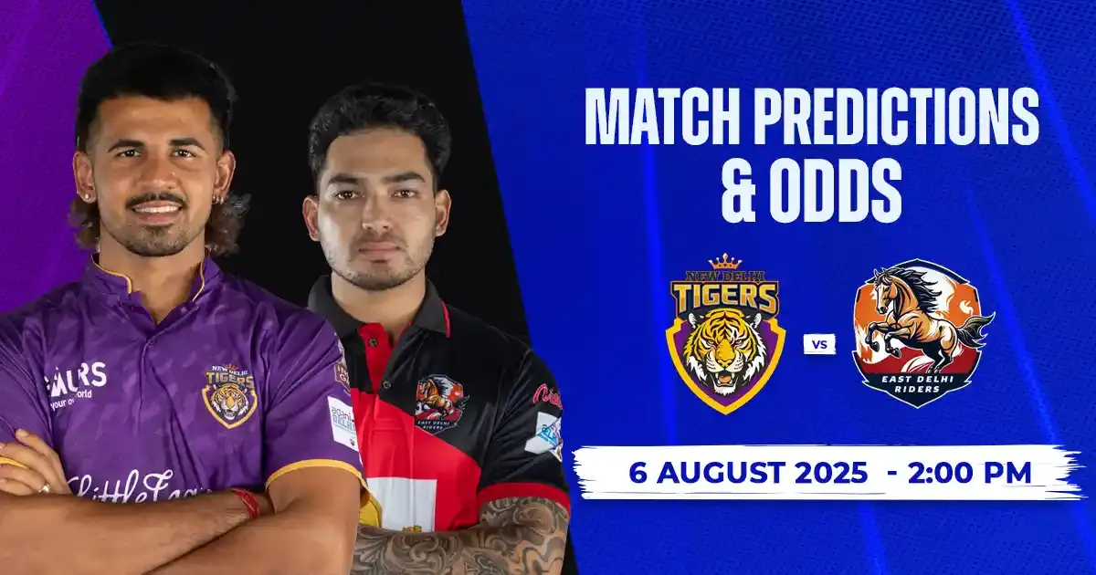 New Delhi Tigers are placed at the third spot in the points table with a win and a loss each, while East Delhi Riders are just behind them with a win and a loss in two matches so far. It is expected to be a thrilling contest between the two teams. Let’s have a look at today’s cricket match prediction, pitch report, head-to-head and key players ahead of the eighth match of DPL 2025 between New Delhi Tigers and East Delhi Riders.