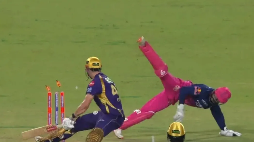 In return, the KKR got off to an embarrassing start and lost their first three wickets in the powerplay. To dismiss Cameron Green, Jurel pulled off a dramatic stumping to force the Aussie batter to walk back to the hut. On the fourth ball of the fifth over, Ravi Bishnoi delivered a googly down leg, but Jurel quickly noticed that Green was out of the crease. He made full use of the opportunity and dived on his left and collected the ball to throw it directly to the stumps one-handed.