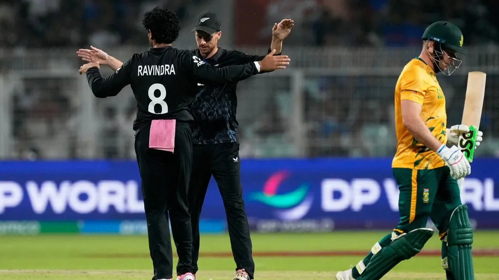 After the power play it was New Zealand bowlers once again who were all over South Africa. Aiden Markram tried to take on Rachin Ravindra but it came off the cue end and he ended up giving a straight catch to long-on. It was a struggle for the South African captain as he was dismissed for 18 of 20 balls. Rachin Ravindra continued his good work as he picked up the wicket of David Miller in his next over as South Africa were four down at the end of the 10 over mark.