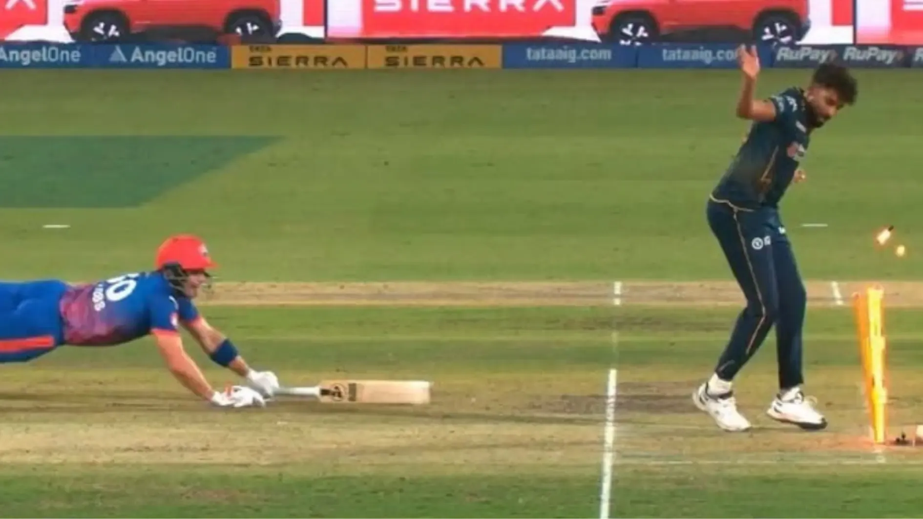 The Gujarat Titans disrupted the momentum of the Delhi Capitals in the middle overs with some quick wickets. But the Capitals weren’t completely out of the game as they still had plenty of fire power to come down the order. With the acceleration of KL Rahul after the powerplay, there was some worry in the Titans dugout. Despite wickets falling at the other end and the injury of David Miller, the game would have been truly sealed only with the wickets of KL Rahul and Tristan Stubbs, who looked in good touch. Then in the 17th over of the innings, Mohammed Siraj bowled a beamer to KL Rahul, who tucked it away and as he tried to get off strike immediately, he later changed his mind and sent his partner back. Tristan Stubbs was halfway down the pitch and Sai Sudharshan hit the bullseye at the non-striker’s end with a terrific throw onto the stumps.