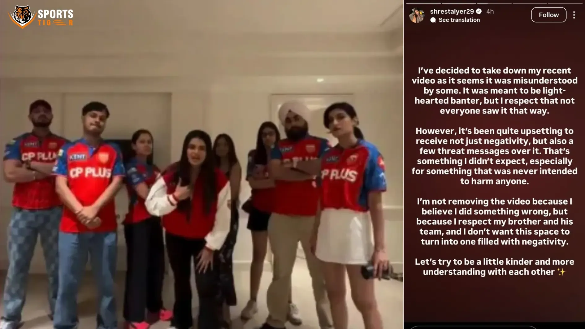 After the KKR vs PBKS match was abandoned, KKR and PBKS both shared one point each. Shresta Iyer, sister of Shreyas Iyer, was seen posting a trolling video on her Instagram Account. In the video, she said jokingly, “Saade Punjabiyan da dil vadda hunda hai, lo de ditta ek point,” which translates to “Punjabis have a big heart. Take the one point.”