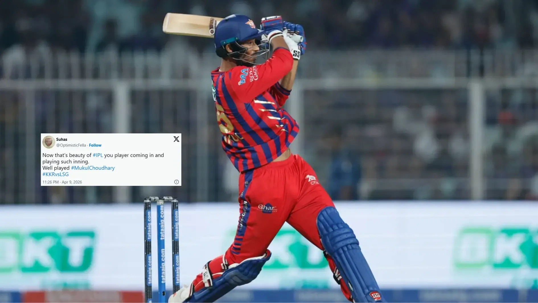 Mukul Choudhary was hailed as the newest breakout superstar of IPL 2026 after a match-winning "blinder" for Lucknow Super Giants (LSG) against Kolkata Knight Riders (KKR) on 9 April 2026. Fans and commentators on Twitter (now X) and other social media platforms are in awe of his composure and raw power-hitting in a high-pressure chase at Eden Gardens.