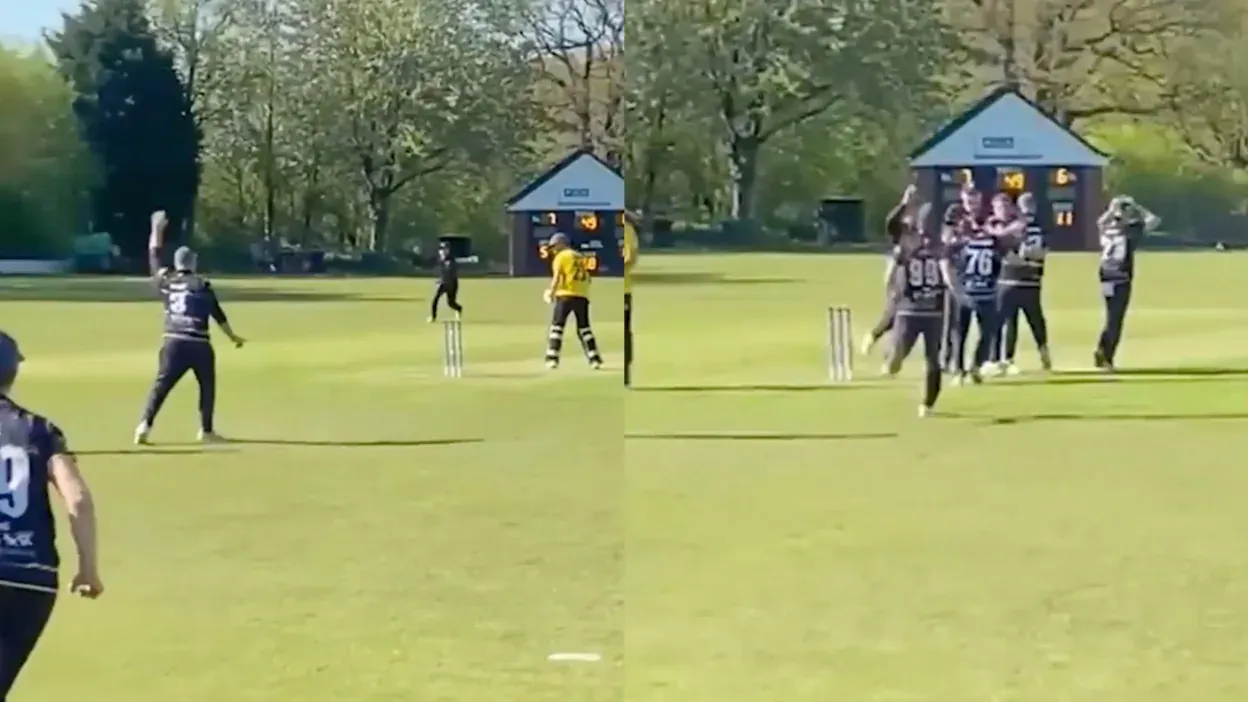Six wickets in six balls! 😮 Penkridge CC bowler Myles Davis took a double hat-trick on Saturday. Wickets 3, 5 and 6 were caught on camera! pic.twitter.com/5OsYDcT2Rd