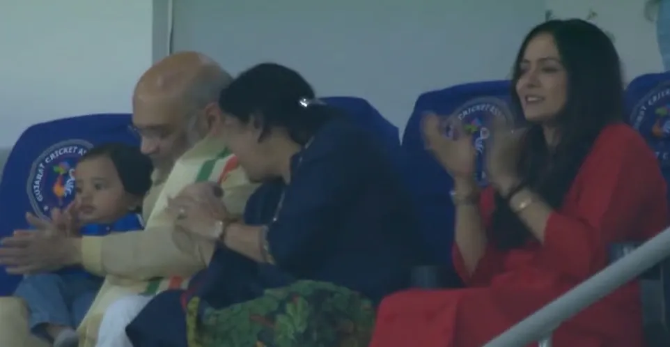 The home minister was holding his beloved grandchild. This was a cute family moment for Amit Shah; however, his son and the ICC chairman, Jay Shah, was missing the moment. Probably, he is seated with the ICC management.