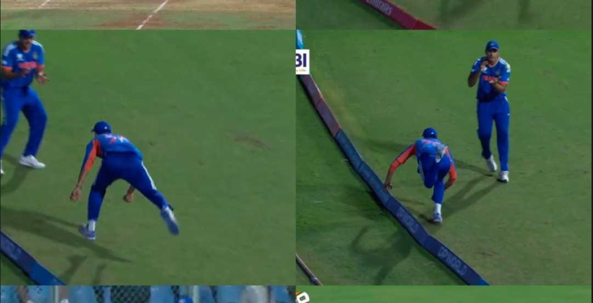 Axar plucked the ball while running at full speed, lost his balance as he approached the boundary cushions, but showed remarkable awareness. Realizing he might step over, he flicked the ball back in play towards a converging Shivam Dube, who completed the catch safely. The entire Indian team erupted in celebration, with Suryakumar Yadav rushing in to embrace Axar for his presence of mind and athletic brilliance.