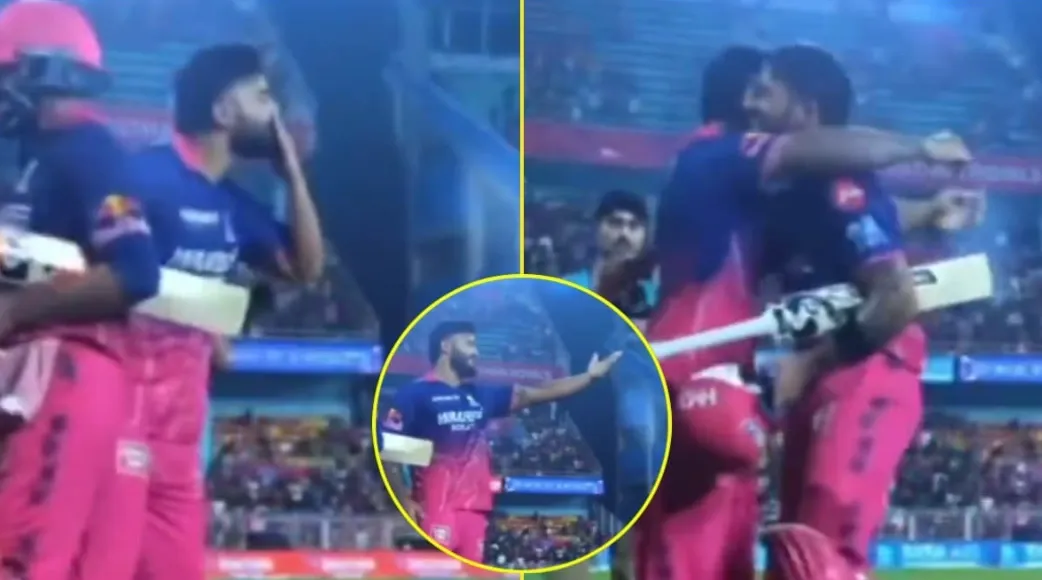 In a vidRiyan Parag’s heartfelt flying-kiss gesture to Dhruv Jurel after RR’s win over RCB goes viral, symbolising the strong bond within Rajasthan’s young core as Jurel’s match-winning knock caps off another dominant performance.