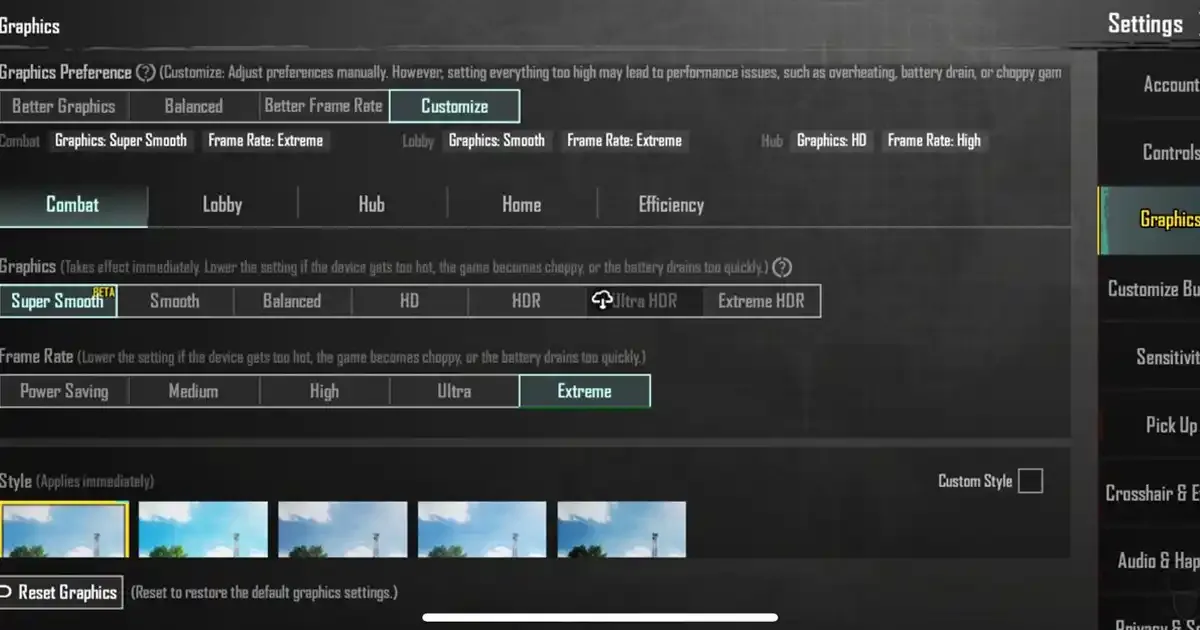 Now, the game has seven graphics settings: Super Smooth, Smooth, Balanced, HD, HDR, Ultra HDR, and Extreme HDR.