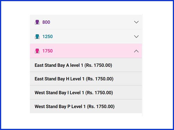 The starting price of the tickets for this game is INR 2,500. Tickets for stands closer to the ground have been priced at INR 3,500 and INR 4,000.