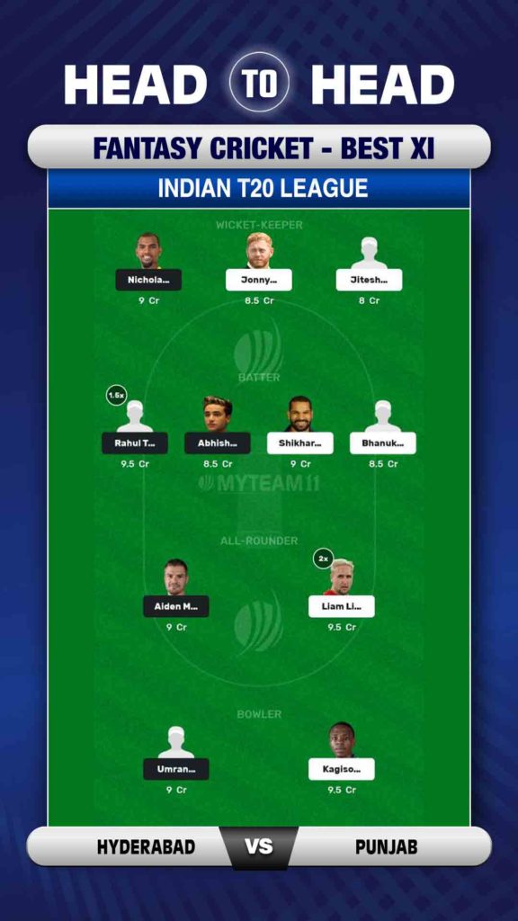 Punjab: Jonny Bairstow, Shikhar Dhawan, Bhanuka Rajapaksa, Liam Livingstone, Mayank Agarwal (c), Jitesh Sharma (wk), Harpreet Brar, Rishi Dhawan, Rahul Chahar, Kagiso Rabada, Arshdeep Singh
