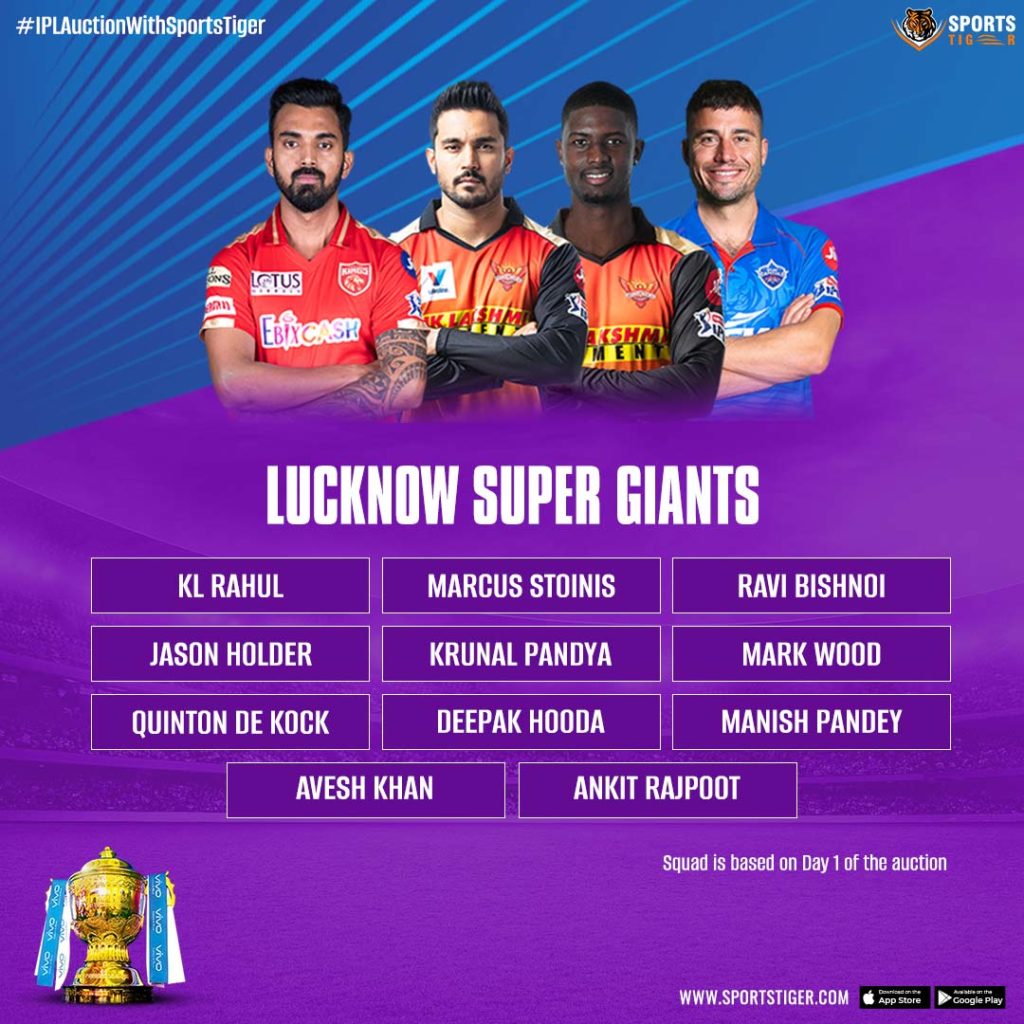 Lucknow Super Giants: KL Rahul, Quinton de Kock, Manish Pandey, Deepak Hooda, Marcus Stoinis, Krunal Pandya, Jason Holder, Ravi Bishnoi, Mark Wood, Avesh Khan, Ankit Singh Rajpoot