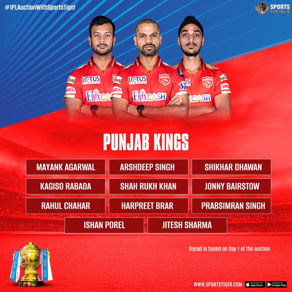 Punjab Kings: Shikhar Dhawan, Mayank Agarwal, Jonny Bairstow, Kagiso Rabada, Rahul Chahar, Arshdeep Singh, Harpreet Brar, Shahrukh Khan, Jitesh Sharma, Prabhsimran Singh, Ishan Porel
