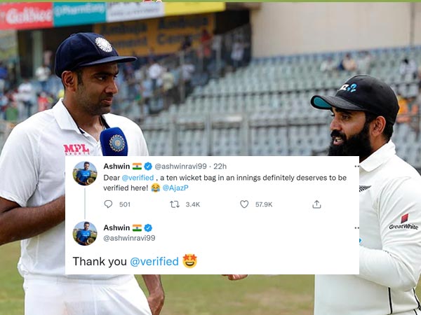 It is to be noted that Ajaz Patel was lauded by the entire cricket fraternity. Indian off-spinner Ravichandran Ashwin also lauded his performance with a standing ovation. There's a little more that Ashwin did which caught everyone's attention. Ashwin took to Twitter to request for Ajaz Patel's Twitter account to be verified after the kind of heroics he showed on field during the 2nd Test.