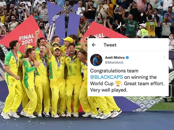 Veteran India leg-spinner Amit Mishra made a blunder on social media and was trolled brutally by the users. While it was Australia who ended their drought of a T20 World Cup and defeated New Zealand in the final to clinch their maiden title on Sunday, Mishra tagged the New Zealand cricket team to congratulate them on winning the tournament. By the time Mishra realized his error, his mistake had already gone viral.
