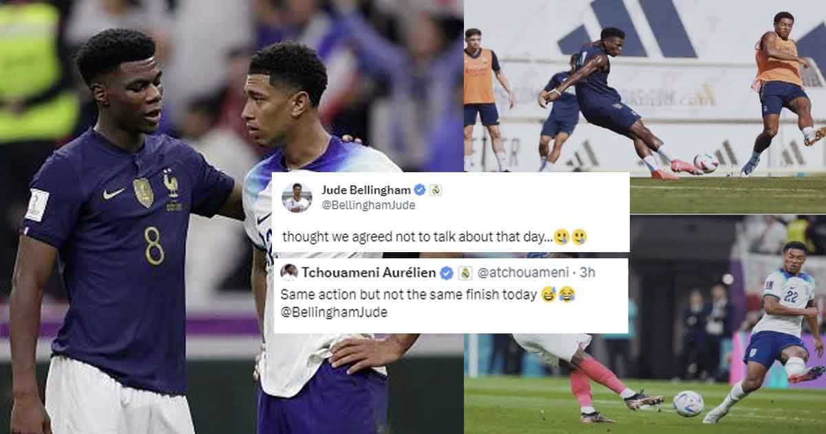 Aurelien Tchouameni recently posted a photo to Twitter showing the young holding midfielder placing a shot while Jude Bellingham appeared to be trying to block it in front of him. Hilariously, the photo was almost a replica of another one from the World Cup in 2022. Tchouameni opened the scoring in that game with a similar strike against Bellingham. The Englishman then responded to Tchouameni and joked that they had agreed not to discuss England’s exit to France at the marquee tournament.