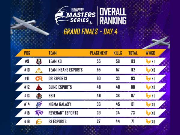 Currently, 16 finalists are competing for the first televised e-sports tournament in India for a winning price of INR 75 Lakh. Team SouL, who were leading the overall standings during the day 3, have been dropped to the third place behind Team GODL and Orangutan.