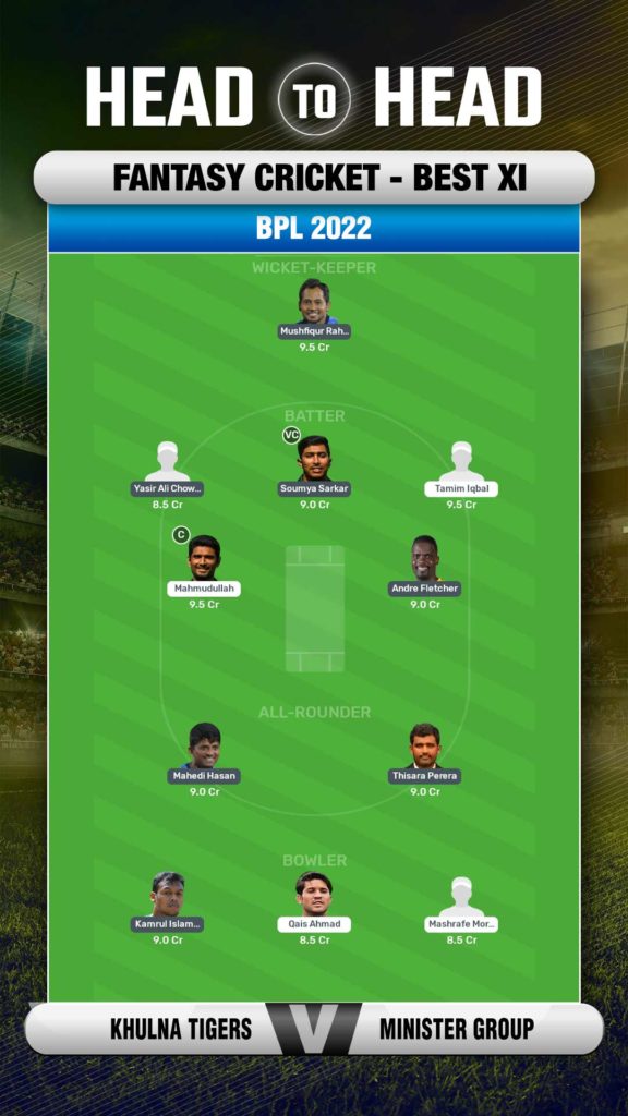 For Minister Group Dhaka, Tamim Iqbal (73 off 56) and Shuvagata Hom (22 off 11) were the standout performers for the team in their last encounter against Chattogram Challengers. Both the players remain much picked for the fantasy team. The team provides good options in the bowling department in the form of skippers Mahmudullah, Arafat Sunny and Mashrafe Mortaza. Meanwhile, Soumya Sarkar (82 off 62) is a mandatory pick for his all-around performance and considering his super form. Yasir Ali (23 off 18) and Mushfiqur Rahim (62 off 38) should be in the fantasy team from the batting department while Thisara Perera will earn some crucial fantasy points with his bowling.