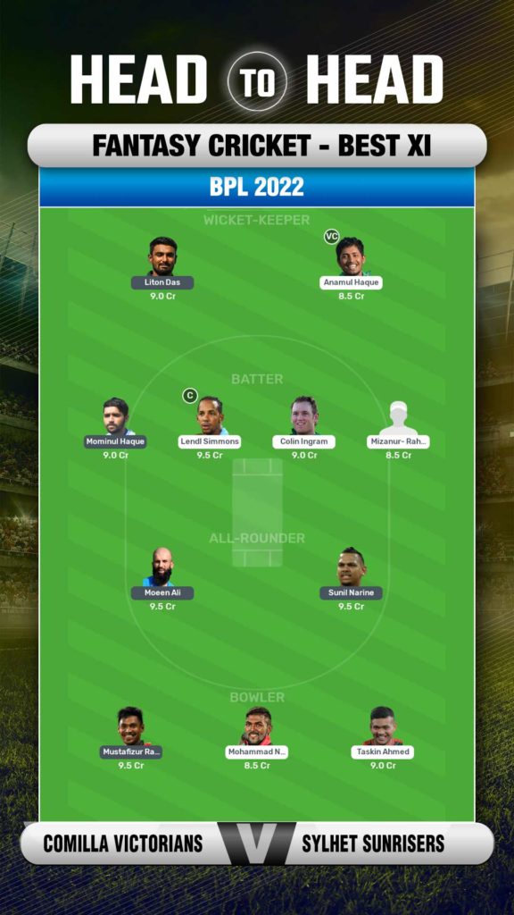 Sylhet Sunrisers had a disappointing outing against Comilla Victorians, they fell short by 15-runs while chasing the target of 182-runs in 20 overs. Anamul Haque (47 off 33), Colin Ingram (37 off 28), and Mosaddek Hossain (39 off 22) played important knocks in their last game and their inclusion in the fantasy team will provide much-needed fantasy points. Meanwhile, Comilla Victorians were defeated by Fortune Barishal in their last face-off. Mominul Haque (30 off 30), Liton Das (19 off 17), Moeen Ali (6 of 11) are a few of the players from the team who should in the fantasy team.