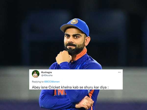 In one such meme, Twitter user @45kusha shared a collage of Virat Kohli's pictures with animated gestures on the field with a caption that read, "Abey isne Cricket khelna kab se shuru kar diya." The user responded this on a BCCI Women's post in which they were updating the scores of the match.