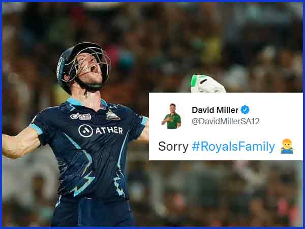 The 32-year-old wrote “Sorry #RoyalsFamily” after taking his new franchise in their maiden IPL final. After his winning knock, Miller also said, “if it’s in the V, it’s in the tree and if it’s in the arc, it’s out of the park”, during the post-match presentation.