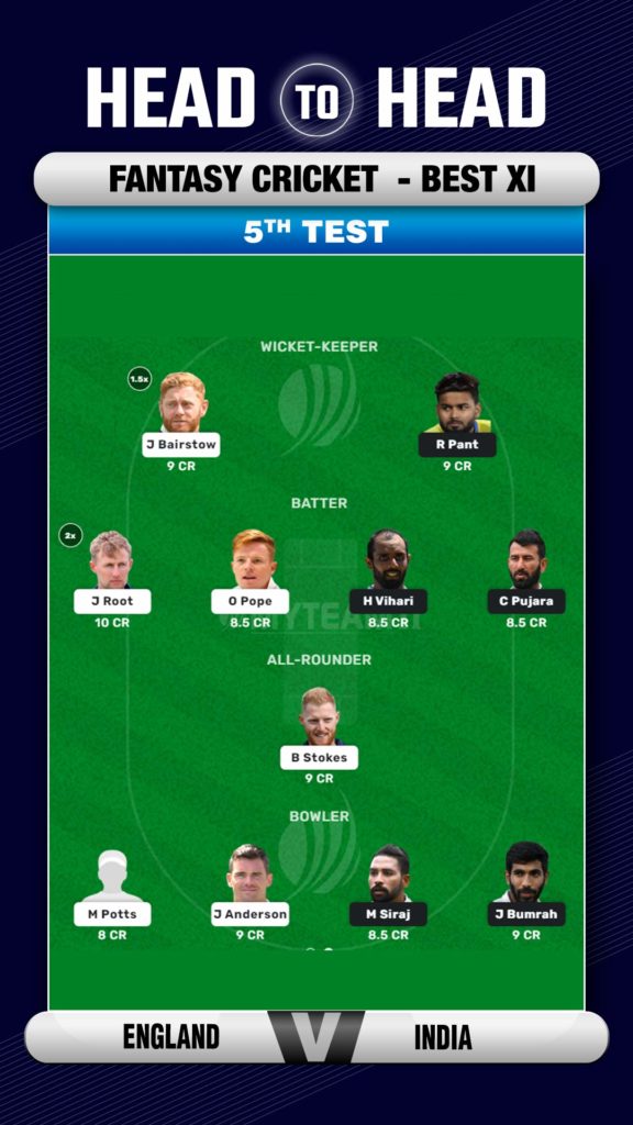 Batters: Joe Root, Virat Kohli, Hanuma Vihari, Cheteshwar Pujara, Ollie Pope