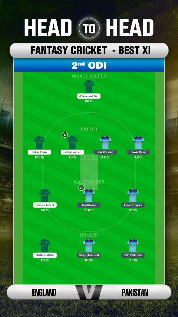 Despite walking in with an inexperienced squad against Pakistan, England registered a phenomenal win over the visitors in the 1st ODI, leading the series 3-0. Given the performances in the first game, Saqib Mahmood has impressed the most, taking a four wicket haul. Among the batsmen, Dawid Malan and Zak Crawley would be the best picks for one's fantasy team, along with England skipper Ben Stokes.