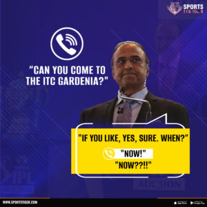 Charu Sharma, who conducted the IPL 2022 Mega Auction to perfection despite coming on such short notice, received a call from IPL GC Chairman, Brijesh Patel. He was asked where he was and what he was doing. He was then informed that the auctioneer for the mega auction has faced a major accident and was asked to immediately reach the venue. Charu Sharma revealed the conversation he had with Brijesh Patel and quoted Brijesh Patel's exact words on the call "Just get into a suit and come to the ITC Gardenia. Let's do this."