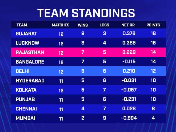 There have been no such changes in terms of any team's standings, but Delhi earned two valuable points in the points table. Delhi franchise has now 12 points after playing 12 games and is placed at fifth position. Rajasthan Royals are stationed at the third spot with 14 points in the points table.