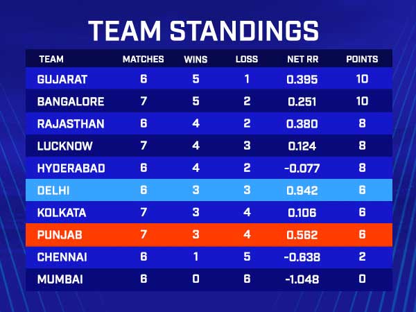 After the 32nd match of the tournament, the Delhi Capitals are sixth on the table with six points from six games. They also have a net run rate of +0.942. Whereas Punjab Kings are eighth on the table with six points from seven games with a net run rate of -0.562.