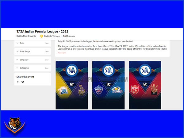 Visit the official IPL website (www.iplt20.com) and find the “Buy Tickets” option. As soon as you click on it, a new page will open where different filters (Date, Location, Price Range, Team name) will be available to select from. One can book by selecting any of those filters.