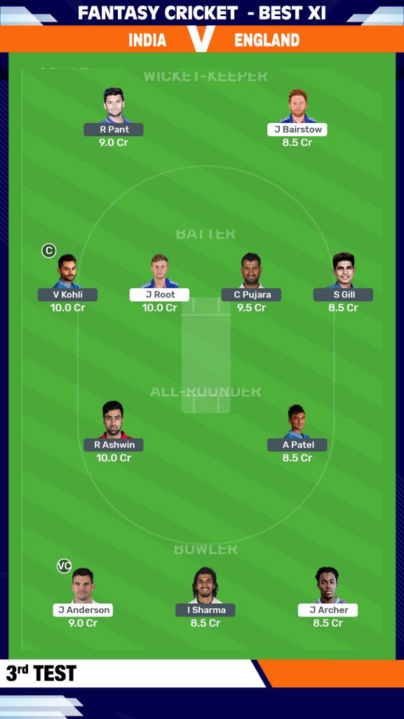 Bowlers: Jasprit Bumrah, Ishant Sharma, Jofra Archer, James Anderson