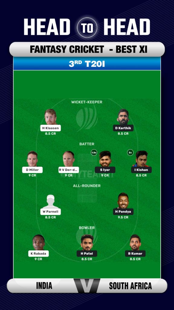 When it comes to choosing players for the fantasy team, there are a few obvious names that must be included. From the visitors’ camp, the pacers, Rabada, Nortje, and Parnell have done a great job and all of them can be included in the team. From the SA batting lineup, David Miller, Heinrich Klaasen, and Rassie van der Dussen look like good options considering their form so far.