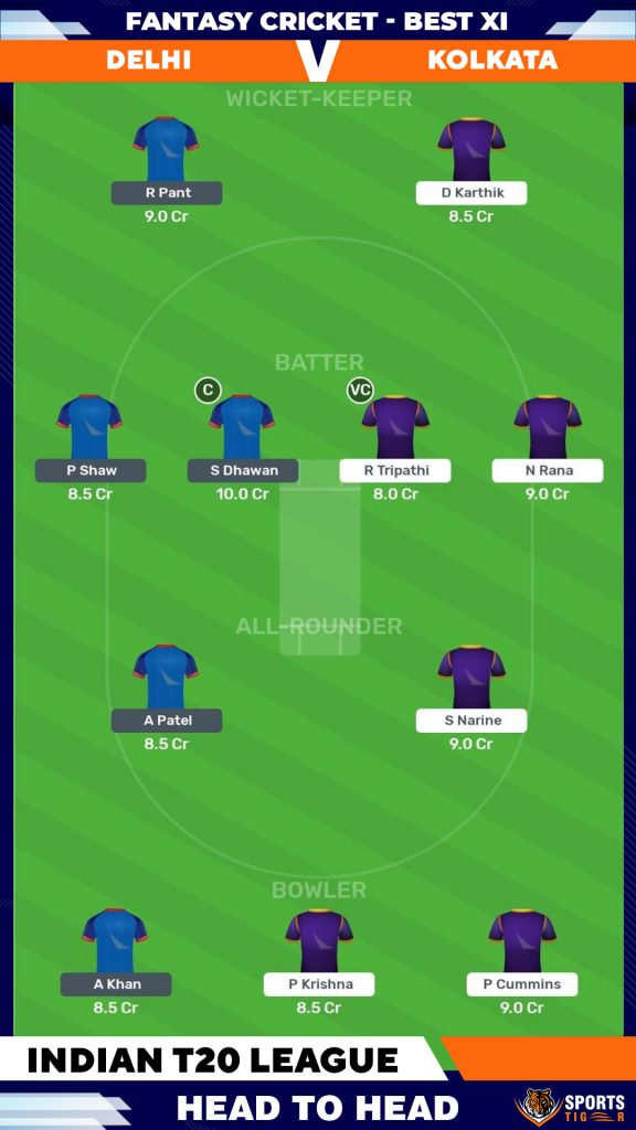 Rishabh Pant should be the first name in your fantasy side considering the impressive run-of-form of the wicketkeeper batsman. He is also a good pick for captain/vice-captain in your fantasy side. Dinesh Karthik could also be an X-Factor addition in your side as he can contribute some vital runs down the order at a healthy strike-rate, giving more points. The Kolkata gloveman is also in the game to inflict stumping with two mystery spinners operating. In the batting department, orange cap holder Shikhar Dhawan should be the player to watch out for as he would be raring to bounce back with a big score after a rare failure against Bangalore. Meanwhile, Prithvi Shaw, Nitish Rana and Shubman Gill have had a few low scores in last few outings but have looked in good touch and could be included in your side.