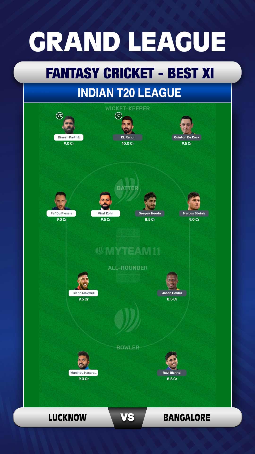 Batters: Faf du Plessis, Virat Kohli, Deepak Hooda, Marcus Stoinis