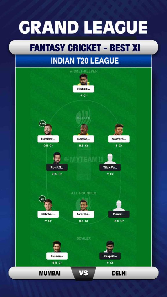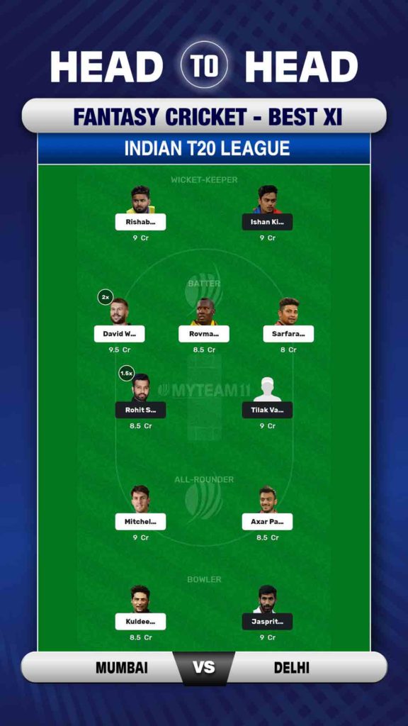 Batters: Tilak Varma, Rohit Sharma, Sarfaraz Khan, David Warner, Rovman Powell