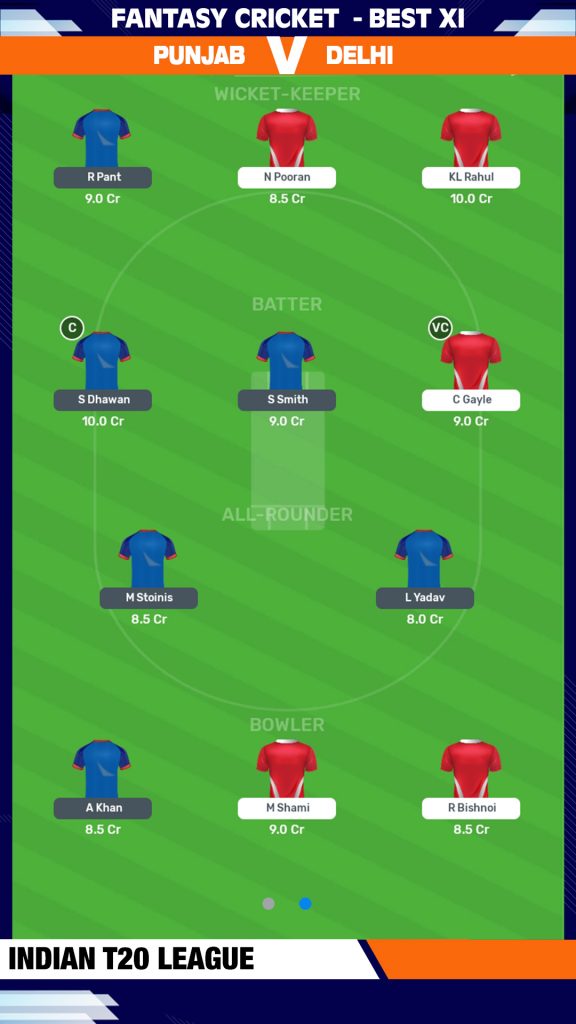 Rishabh Pant, Marcus Stoinis and Shimron Hetmyer form a strong Delhi middle-order and the trio will carry the responsibility of holding it together and also score runs at a fast pace. Their performance along with Steven Smith’s anchoring role will be critical if Delhi openers are dismissed cheaply. In the bowling department, Avesh Khan and Mohammed Shami are must-picks as they have been phenomenal so far.