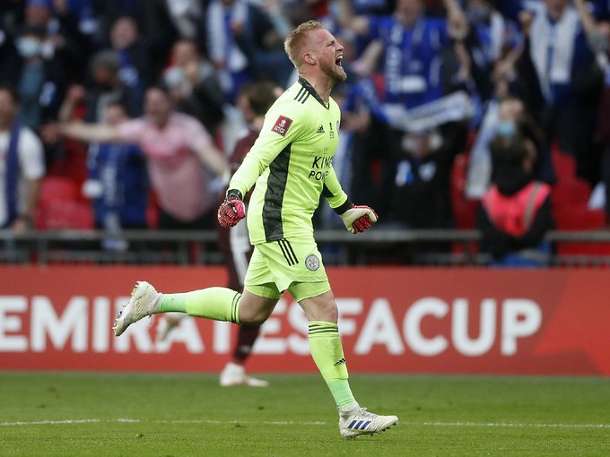 Schmeichel became the first keeper since Arsenal's David Seaman in 2003 to captain a side to an FA Cup win, Leicester's first at the fifth time of asking.