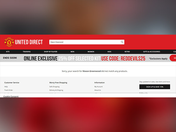 One can even verify the same by searching for the player's name on the online shop as they will receive the message: "Sorry, your search for mason greenwood did not match any products." In addition, the name of the player has also been removed from the 'Shop By Player' section.