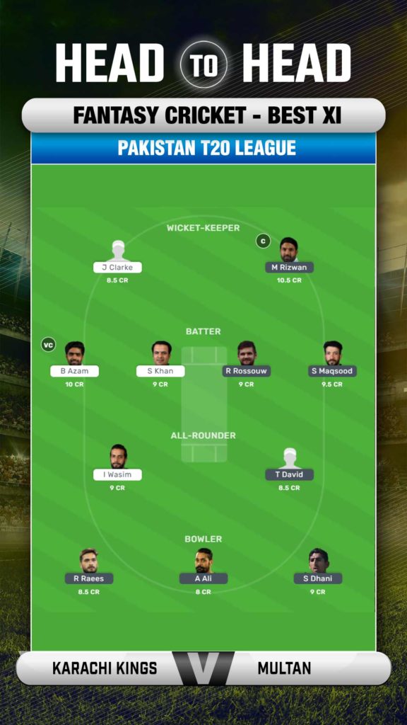 Both the teams have a powerhouse in batting with the likes of Mohammad Rizwan and Babar Azam in the dugout. The pitch also has been a paradise for the batters. So, including as many batters as possible will fetch good points. Apart from Babar and Rizwan, pinch hitters like Rilee Rossouw are also a good choice. Tim David also has a similar kind of reputation. From the bowlers' category, Shahnawa Dahani looks a good option. The pitch doesn't offer so much to the spinners so including them is not a real good deal.