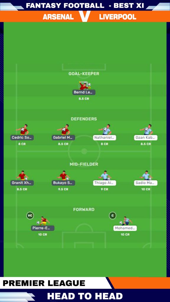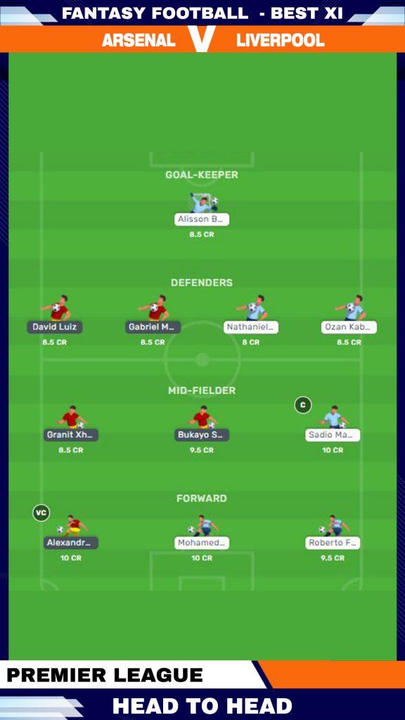Midfielders: Sadio Mane, Bukayo Saka, Granit Xhaka, Thiago Alcantara