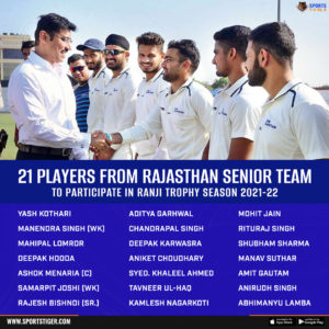 Rajasthan Cricket Association (RCA) on Thursday announced a 21-member squad for Ranji Trophy, which is starting from February 10th. Players will report at RCA Academy Jaipur on 5th February 2022 for their team camp and will stay in bio-bubble throughout the tournament.