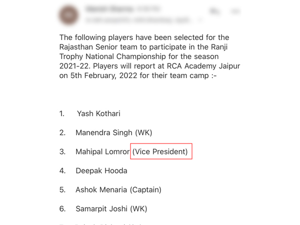 However, what caught the eye in RCA's press release was the mention of Mahipal Lomror as Vice President instead of Vice-Captain. While Ashok Menaria has been appointed as skipper and will lead the side in the domestic tournament, Lomror is set to be his deputy. However, RCA did a little blunder and mentioned Lomror as the Vice-President of the team.