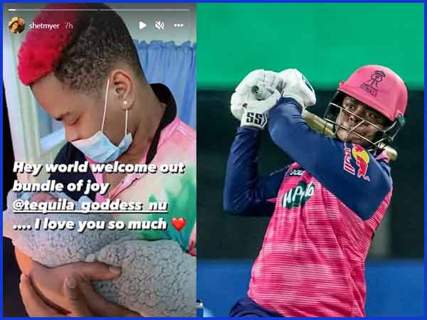 Rajasthan Royals batter Shimron Hetmyer has been blessed with a child. The power-hitter broke the news on Tuesday morning (May 10). The left-handed batter shared an adorable post of himself playing with his newborn baby on his Instagram story. The post also had a special message for Hetmyer’s wife as the power-hitter batter wrote, “Hey world welcome out a bundle of joy, tequila_goddess_nu I love you so much”.