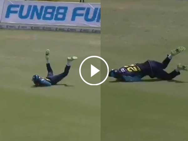 Lewis tried to pull the ball but did not really time his shot as he would have wanted. The ball probably struck it high on his bat and hence wasn't traveling to the boundary. But interestingly, Roston Chase was standing way ahead of the ropes which gave him a chance to attempt the catch.