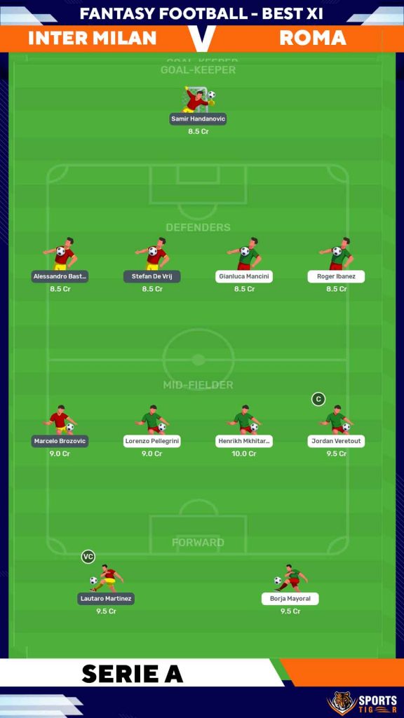 Midfielders: Pellegrini, Mkhitaryan, Brozovic, Hakimi, Barella