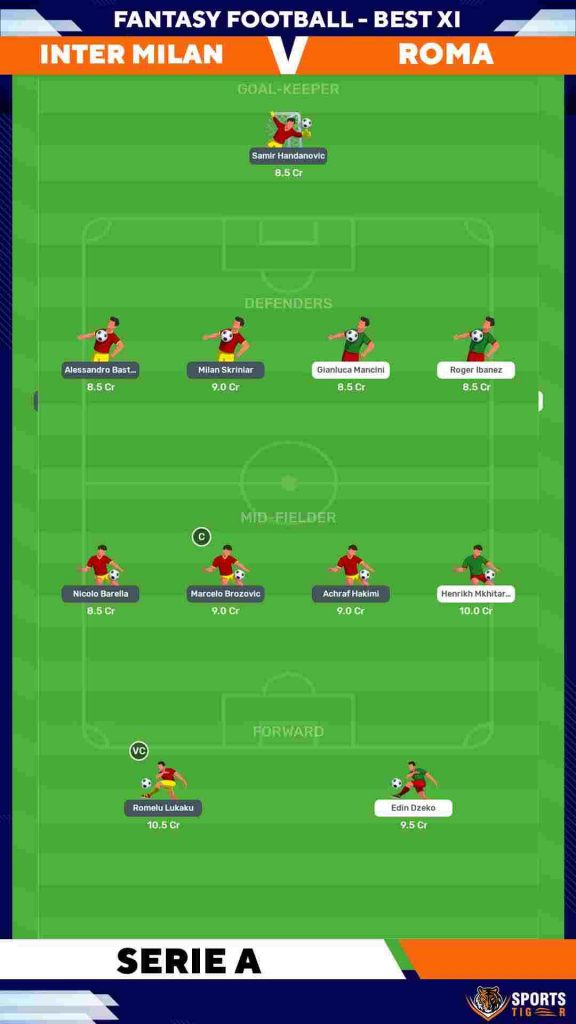Samir Handanovic(GK), Milan Skriniar, De Vrij, Bastoni, Hakimi, Nincolo Barella, Marcelo Brozovic, Christian Eriksen, Ivan Perisic, Romelu Lukaku, Alexis Sanchez