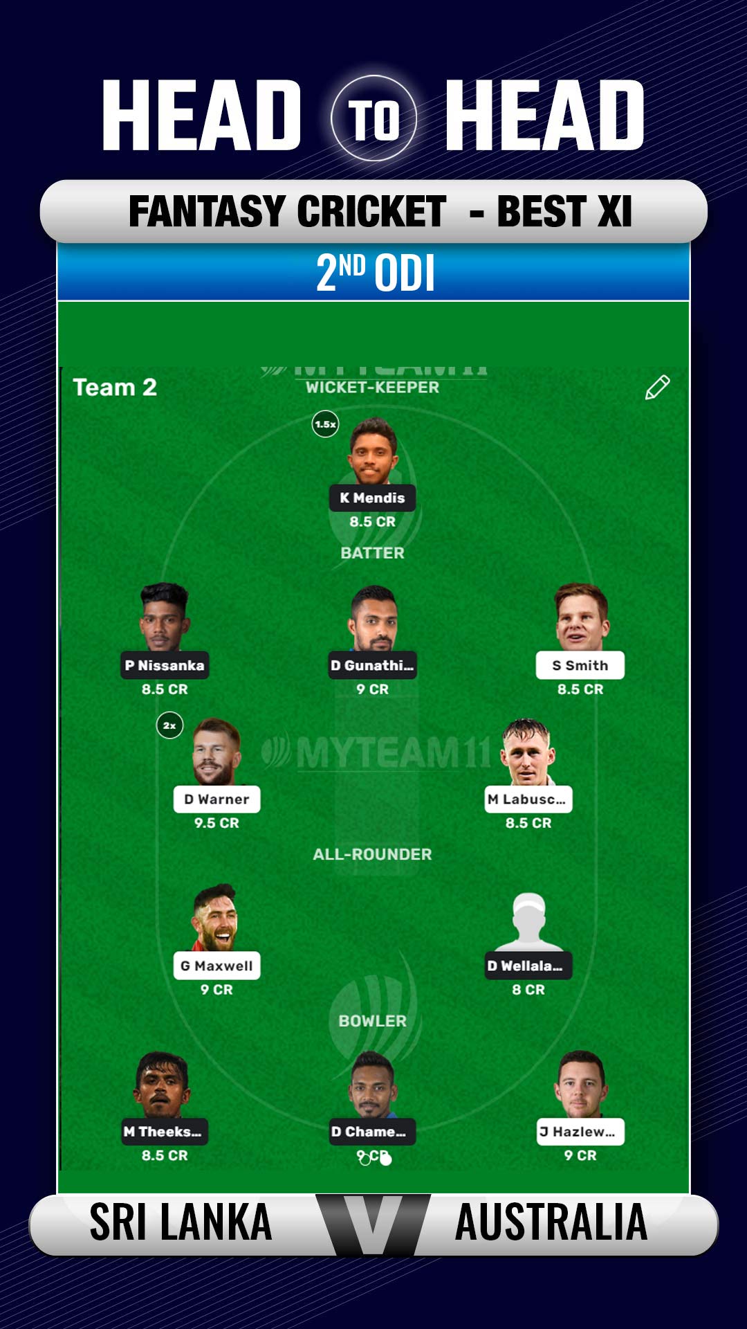 There were a few brilliant batting performances from both camps in the 1st ODI. While Danushka Gunathilaka, Pathum Nissanka, and Kusal Mendis scored for Sri Lanka, Glenn Maxwell, Steve Smith, Aaron Finch, and Marcus Stoinis scored for Australia. Barring Stoinis, all the aforementioned players will be available for the second ODI and can be picked in the fantasy team. David Warner can also be a good choice.
