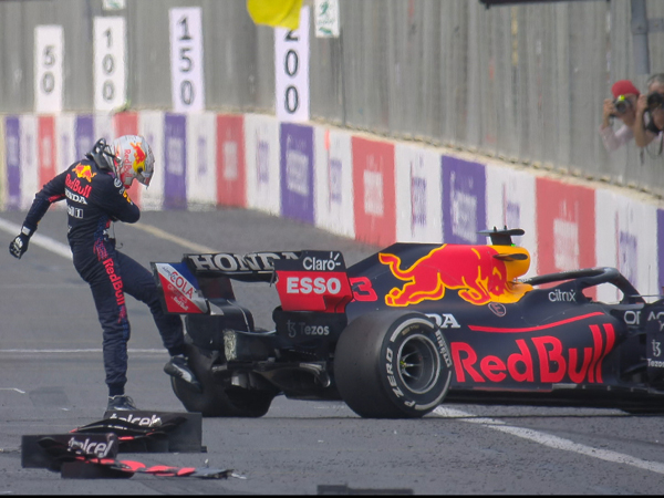 A dejected Max Verstappen declared that "sometimes you can hate this sport" after a late crash cost him victory in a dramatic Azerbaijan Grand Prix. Verstappen looked destined to take the top step of the podium in Baku until he suffered a tyre blowout when he was leading with five laps to go.