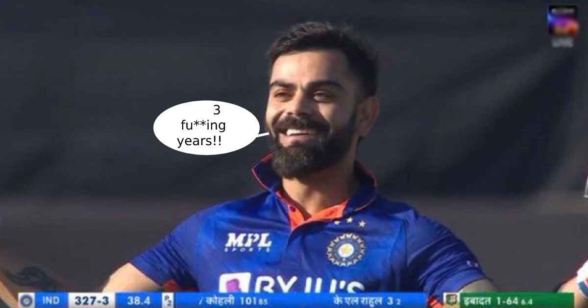 However, Kohli’s delight with that knock was quite evident as he acknowledged the applause at Zahur Ahmed Chowdhury Stadium and was caught saying, "three fu***ng years boys". The 34-year-old hit a six to achieve the feat.