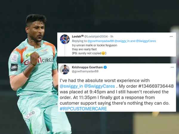 An interesting incident took place on Twitter when Lucknow Super Giants' cricketer Krishnappa Gowtham tweeted about not getting the food ordered by Swiggy on time on Twitter. Many cricket fans took a dig at the app by suggesting Gowtham to get the food delivered by Hyderabad pacer. Few Twitter users also suggested trying Lockie Ferguson, who is equally fast as Umran Malik.